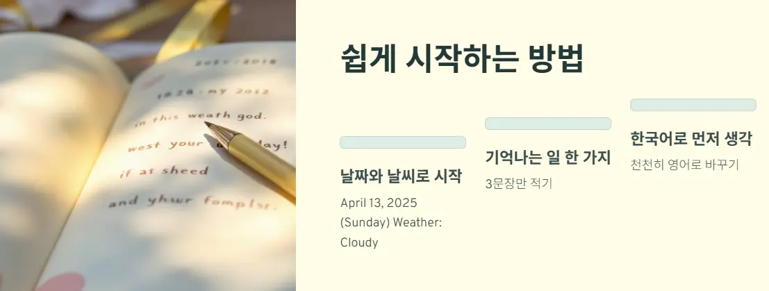 지금 당장 영어 일기 쓰기를 시작해보세요. 하루 5분이면 충분합니다.
